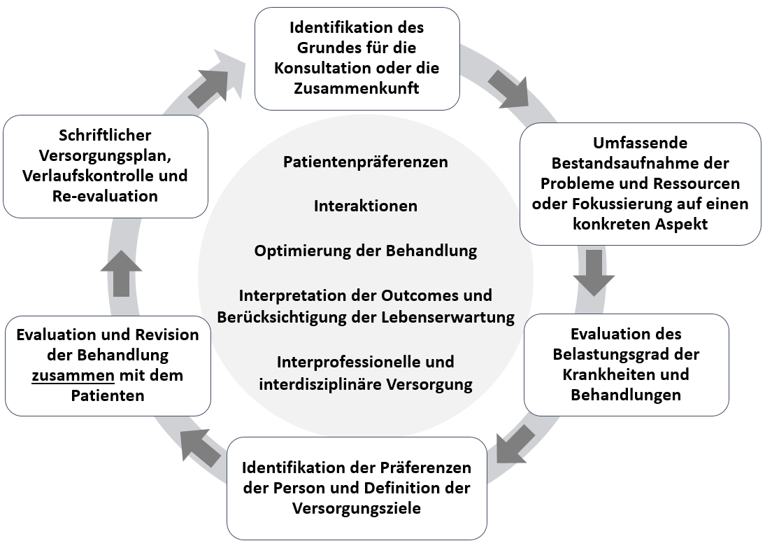 - Die Personen unterstützen, ihre Lebensqualität zu erhalten oder zu verbessern. Bei der gemeinsamen Entscheidungsfindung mit dem Patienten werden seine Prioritäten im Bezug auf Therapie, Behandlung, gesundheitliche Schwerpunkte und Lebensplanung miteinbezogen.
